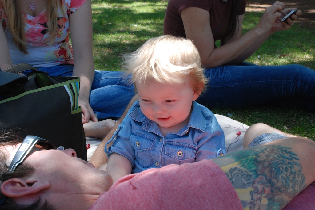 Getting ready for an outing. We spent a few hours with Uncle Matt and Aunt Kaleena at a park in Folsom.