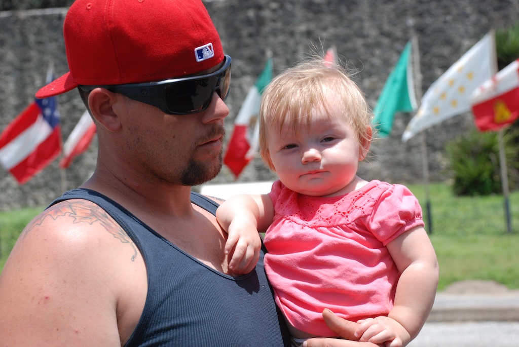 DSC_7340 Kirby seemed unimpressed.Horse lubber grasshopperThere was a short nature trail outside the mission. I later identified this huge insect as a Horse Lubber grasshopper. Yikes!Goliad State Park-PresidioThe next stop was just across the San Antonio River, at the Presidio La Bahia,”the only Spanish fortress for the entire Gulf Coast from the mouth of the Rio Grande to the Mississippi River” (Wikipedia)IMG_5310Nine flags indicate the changes in control of the region.DSC_7374Kirby and Kurtis outside the Presidio.Goliad State Park-Presidio (1) There was a 15 minute film about the historical events at Goliad but Kirby wasn’t ready to sit through that. So I took Kirby through the Presidio building where you can walk through a timeline of the history. Mescalbean, Mtn laurelAfter our tour of the Presidio Dan and I sat in the shade while Katie fed Kirby lunch in the air-conditioned car. Look at what I saw on the ground under this tree:Mescalbean, Mtn laurel (1)First I noticed the red beans. Then I saw that they came out of these pods that, honestly, look like something I’d clean up in my yard full of dogs. Later I googled “red beans from tree in southern Texas” or something like that and found that this tree is the Mescalbean or Mountain Laurel, not related to the alchoholic drink, but still with psychoactive properties.