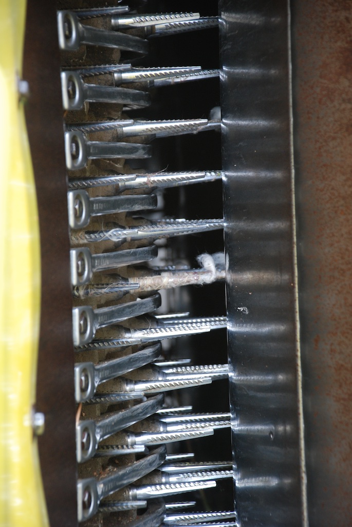Close-up of the rotating barb spindles that pluck the cotton from the plant.