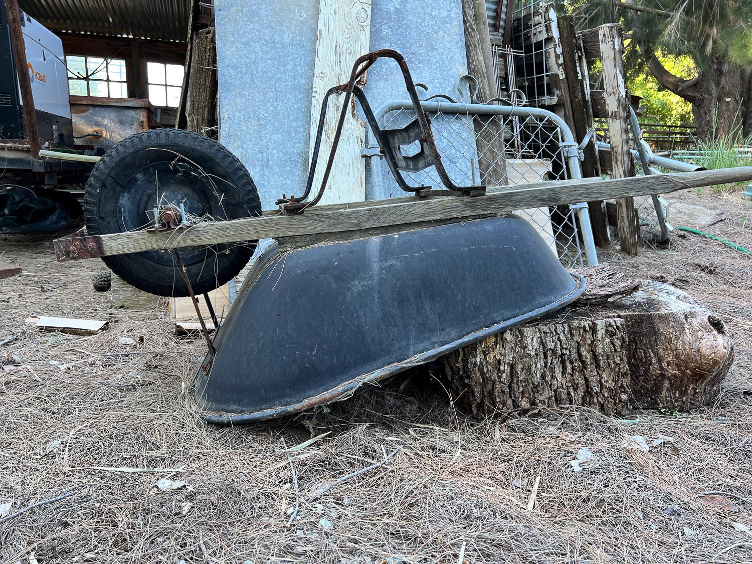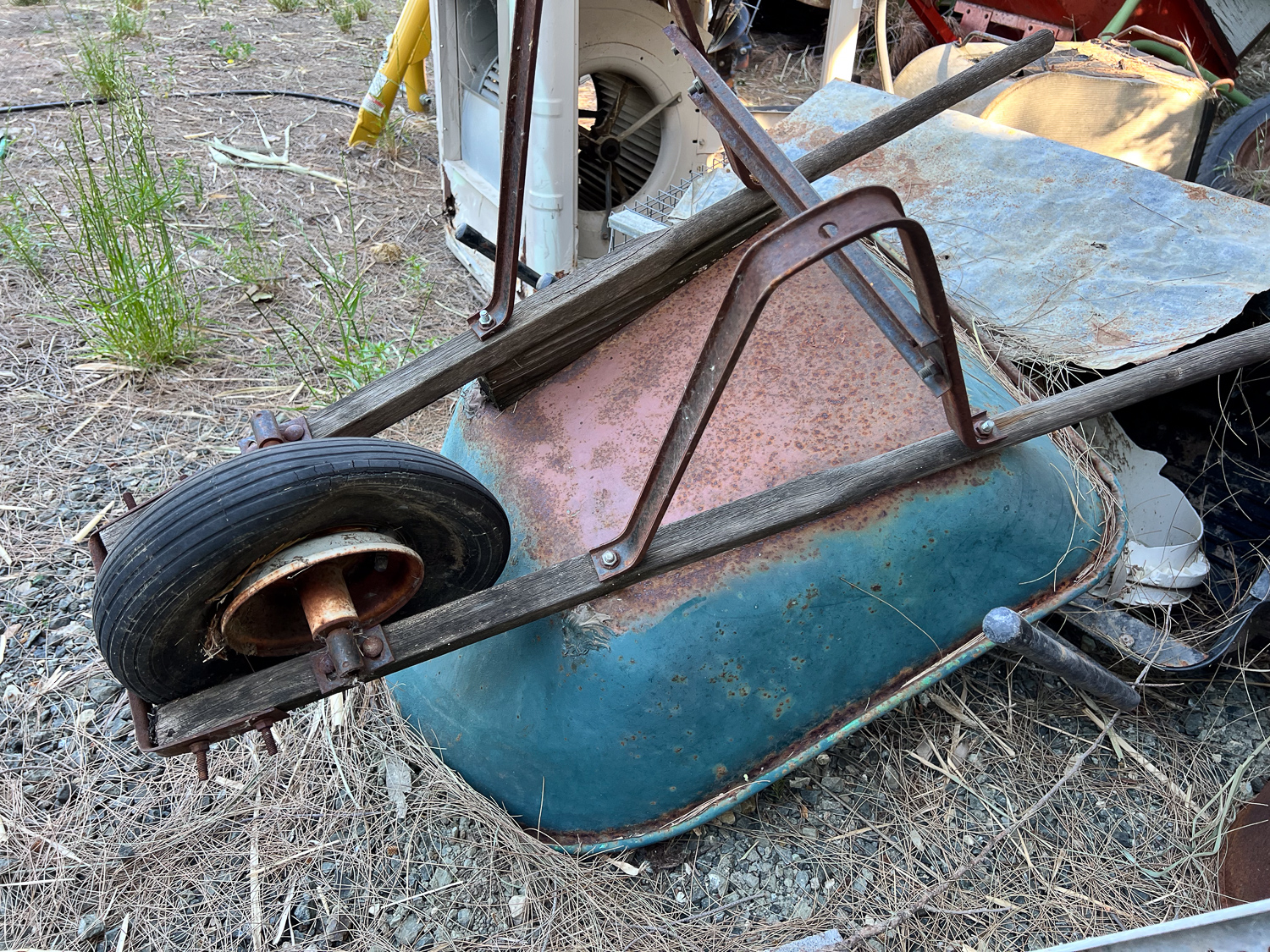 I was talking with my daughter and she said something about her memory of a wheelbarrow that had been at my mom’s house. I thought it was probably around here somewhere (do farmers ever throw anything away?) and that prompted me to look for it.