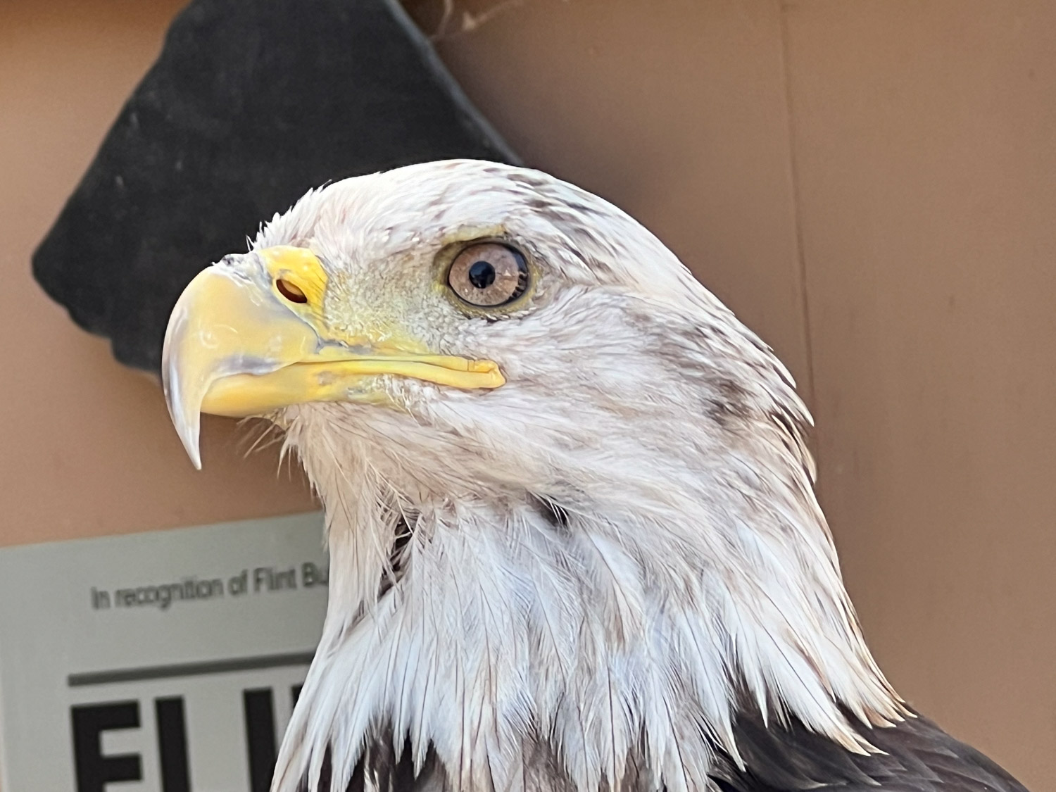 This handler had come to the library presentation but was back at the center to show off a 4-year old bald eagle.