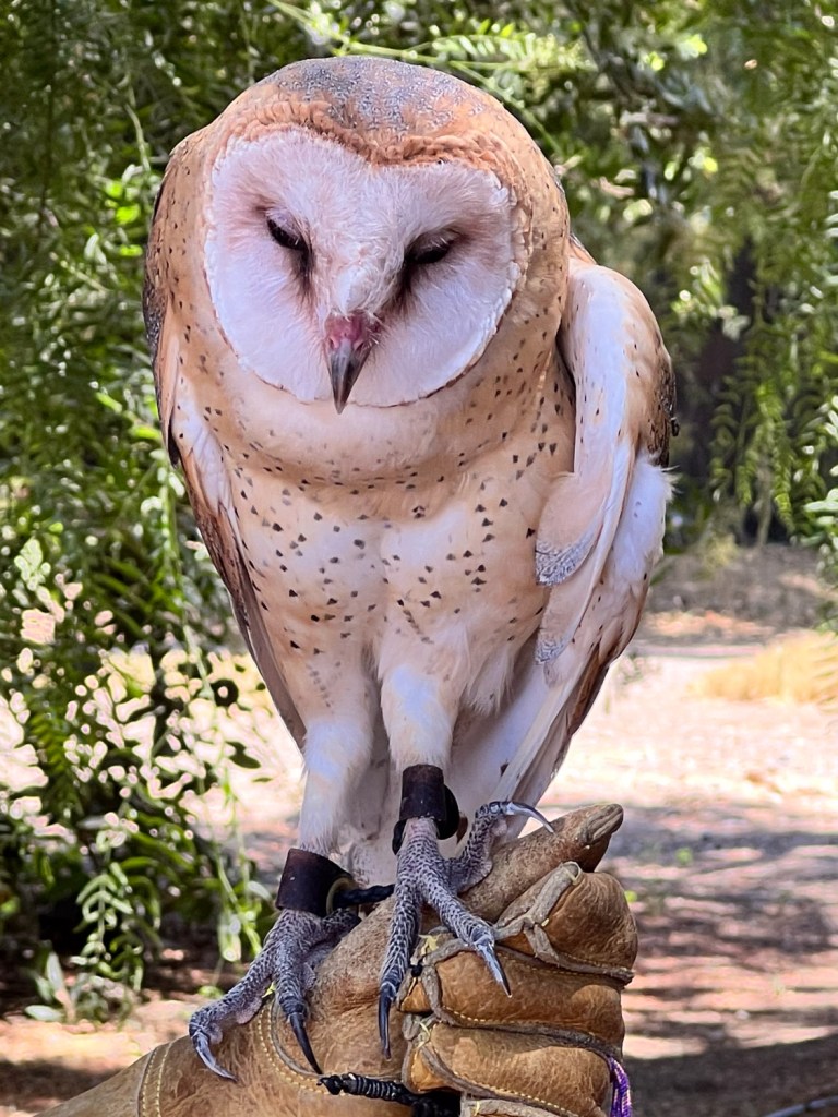 This barn owl was injured at a very young age when the palm tree in which she lived was cut and she broke her wing. She is a permanent resident.