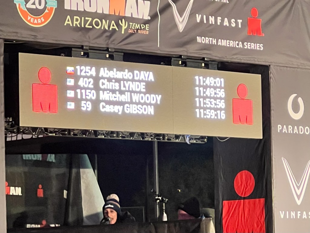 I left off in the last post with Chris starting the marathon, the third part of the Ironman that was two weeks ago.