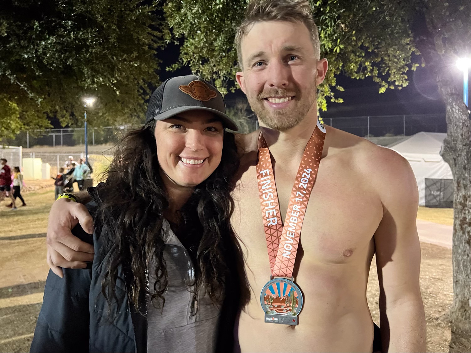 Meryl and Chris wearing a well-deserved finisher’s medal.