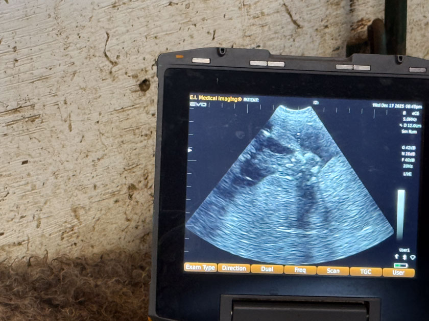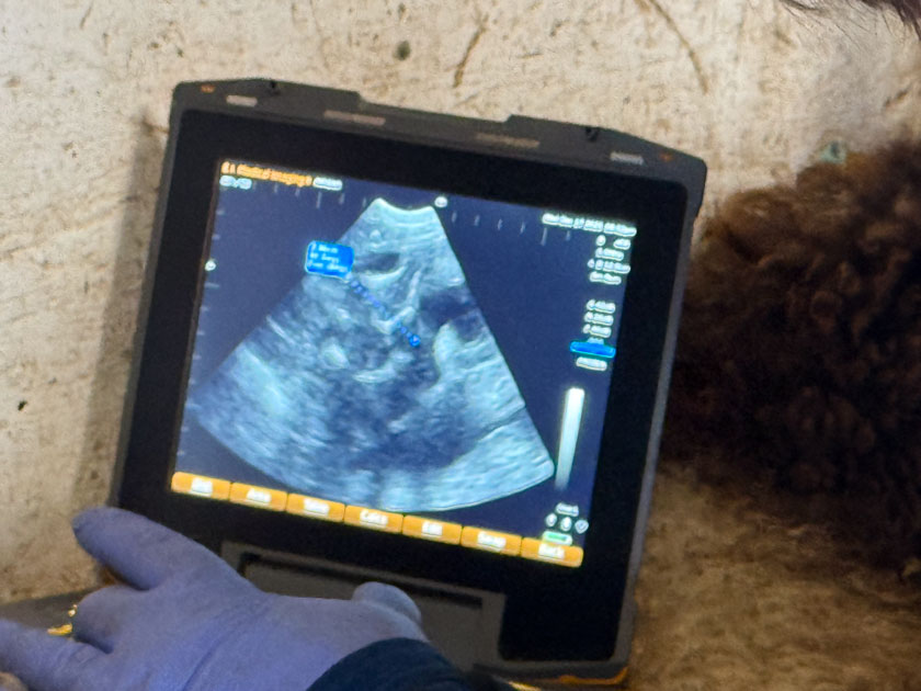 It’s worth it for me to be have confirmation of pregnancy, confirmation of due dates, and idea of how many lambs to expect. It’s not an exact science. I remember a couple of years ago when the prediction was two sets of triplets and there were eight! Some of it is about the timing of the ultrasound. Breeding season this year was from September 27 to November 11. We scheduled ultrasound day so that the timing would be right to confirm pregnancy for the sheep bred the latest. For those bred at the beginning of breeding season, the vets can certainly confirm pregnant or not, but may not be able to get an accurate count of the number of lambs because of the size of them at that point.