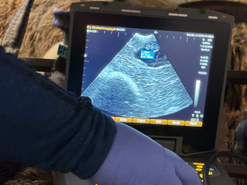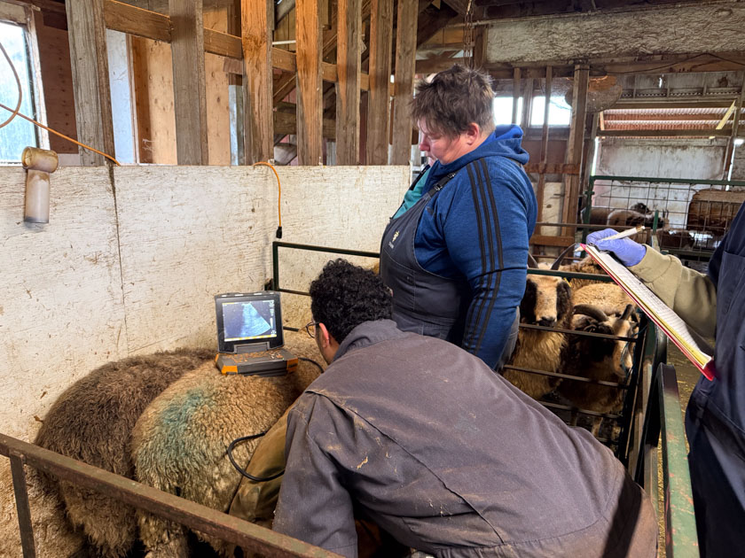 It’s worth it for me to be have confirmation of pregnancy, confirmation of due dates, and idea of how many lambs to expect. It’s not an exact science. I remember a couple of years ago when the prediction was two sets of triplets and there were eight! Some of it is about the timing of the ultrasound. Breeding season this year was from September 27 to November 11. We scheduled ultrasound day so that the timing would be right to confirm pregnancy for the sheep bred the latest. For those bred at the beginning of breeding season, the vets can certainly confirm pregnant or not, but may not be able to get an accurate count of the number of lambs because of the size of them at that point.