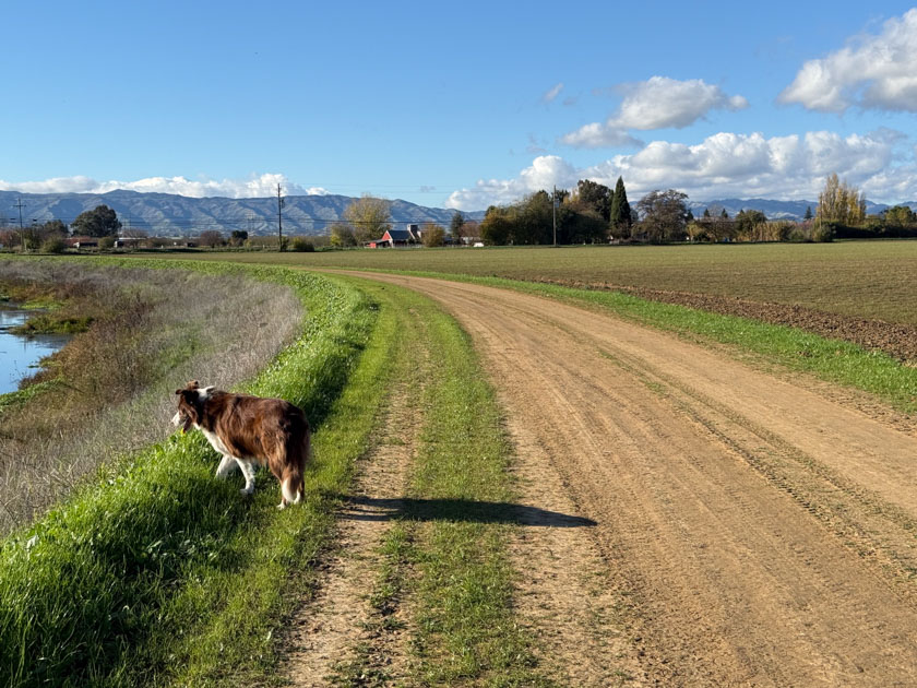 The sun came out–this was significant since it had been 23 days or so since we’d seen it! After the vets had left and I cleaned the barn I had to get out for a walk. The sheep that were Across the Road were moved a couple of days ago, but that is another story when I can get to it.