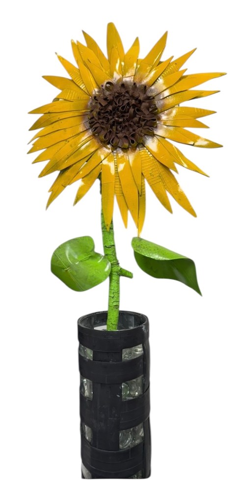 Two sunflowers here at the farm that brighten up the foggy winter. On the left is a sunflower that is in the Weaving House (my studio/classroom). This is made by one of the Artery members who creates art from bicycle inner tubes! The one on the right is my birthday present made by Dan from horseshoes and metal scraps. You can’t tell from this photo but it is as tall as me and now marks my parking space near the garden!
