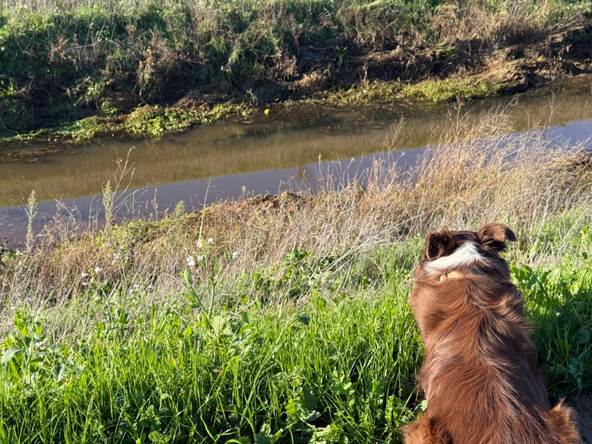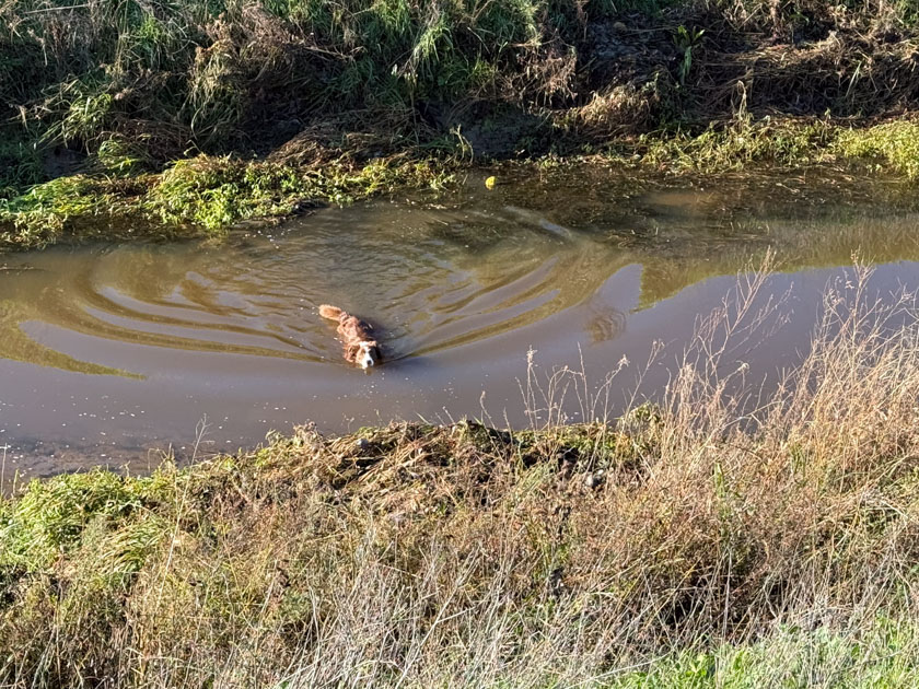 Ginny swam across the canal but was disappointed to find out that the yellow object was not a ball. That made me wonder about colors that dogs see. I didn’t think that they distinguish color. Here is what AI says: “Yes, dogs can see yellow, and it’s one of the primary colors they distinguish well, along with blue; they have dichromatic vision, meaning they see a spectrum dominated by blues and yellows, while reds and greens often appear as brownish or grayish shades. Their vision isn’t black and white, but it’s limited compared to humans, making yellow tennis balls stand out clearly against green grass for them.” Look at what you can learn when reading this blog.