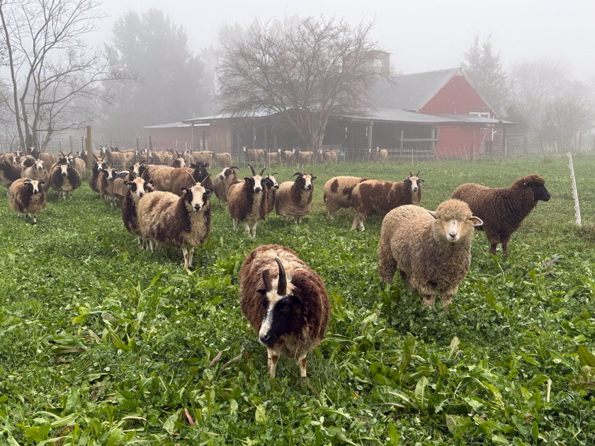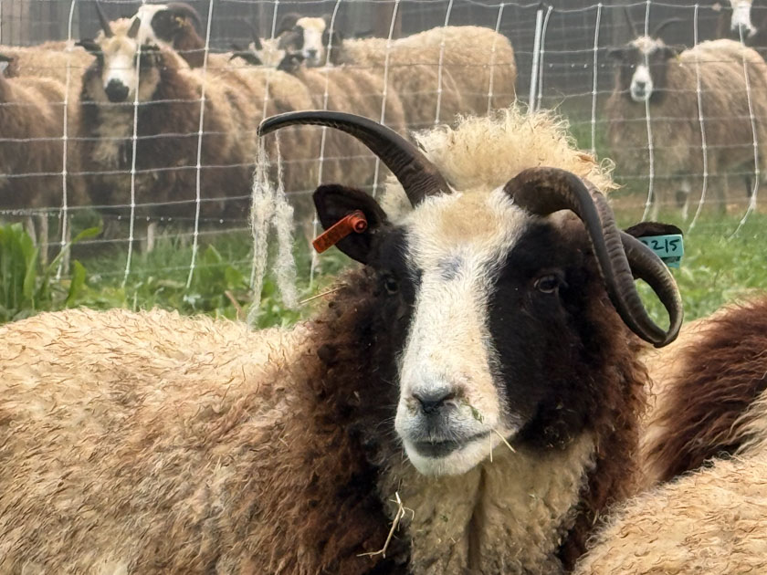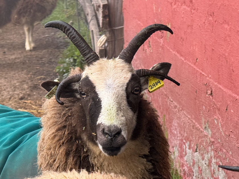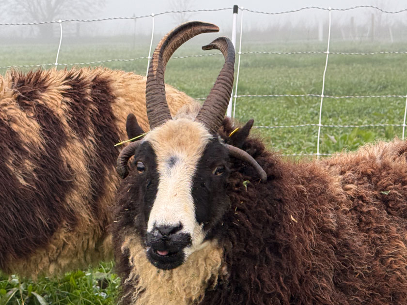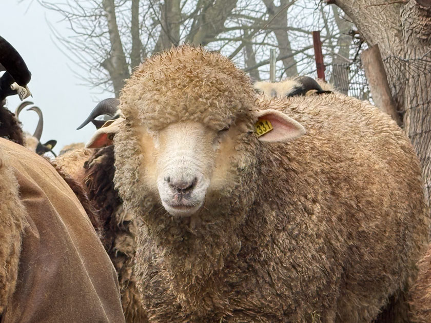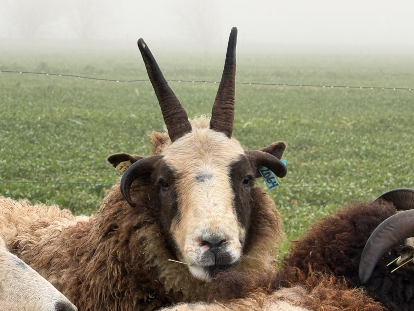 The sheep had already been out before I walked to the pasture so they didn’t bury their faces to start grazing immediately. It was a good opportunity to take sheep portraits.