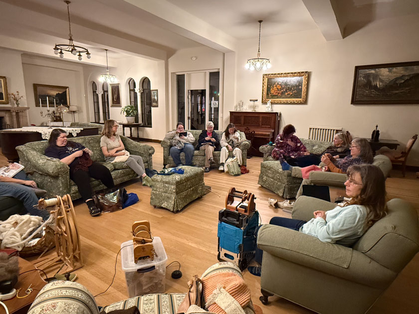 …and spent the rest of the evening in the parlor spinning and knitting and visiting. To be continued…