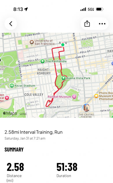 A screenshot from my phone showing my route. I like this app because I can figure out where I’m going as well as track the details later.
