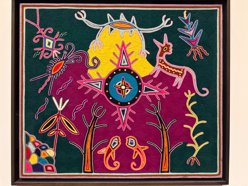 This one is created, according to the sign, of “yarn affixed to a wax covered board”. You can’t tell from this photo but when you see it close up you see the individual strands of yarn, not sewn, not woven, just in place to cover the board.