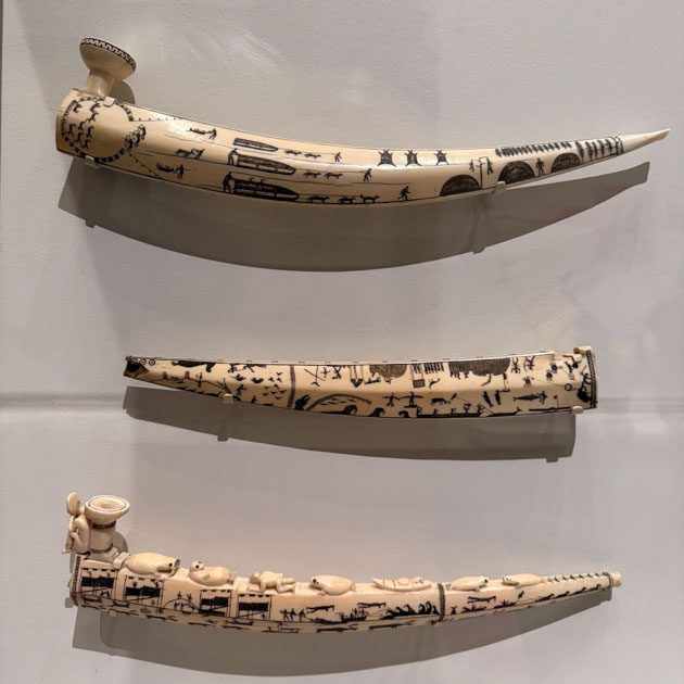 I was impressed by the detail in these pipes carved of walrus tusk.