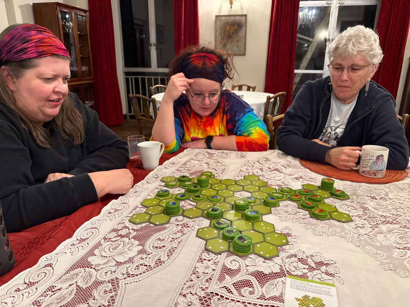 We ordered dinner in on this night and had a few intense games of Battle Sheep, another Retreat ritual.