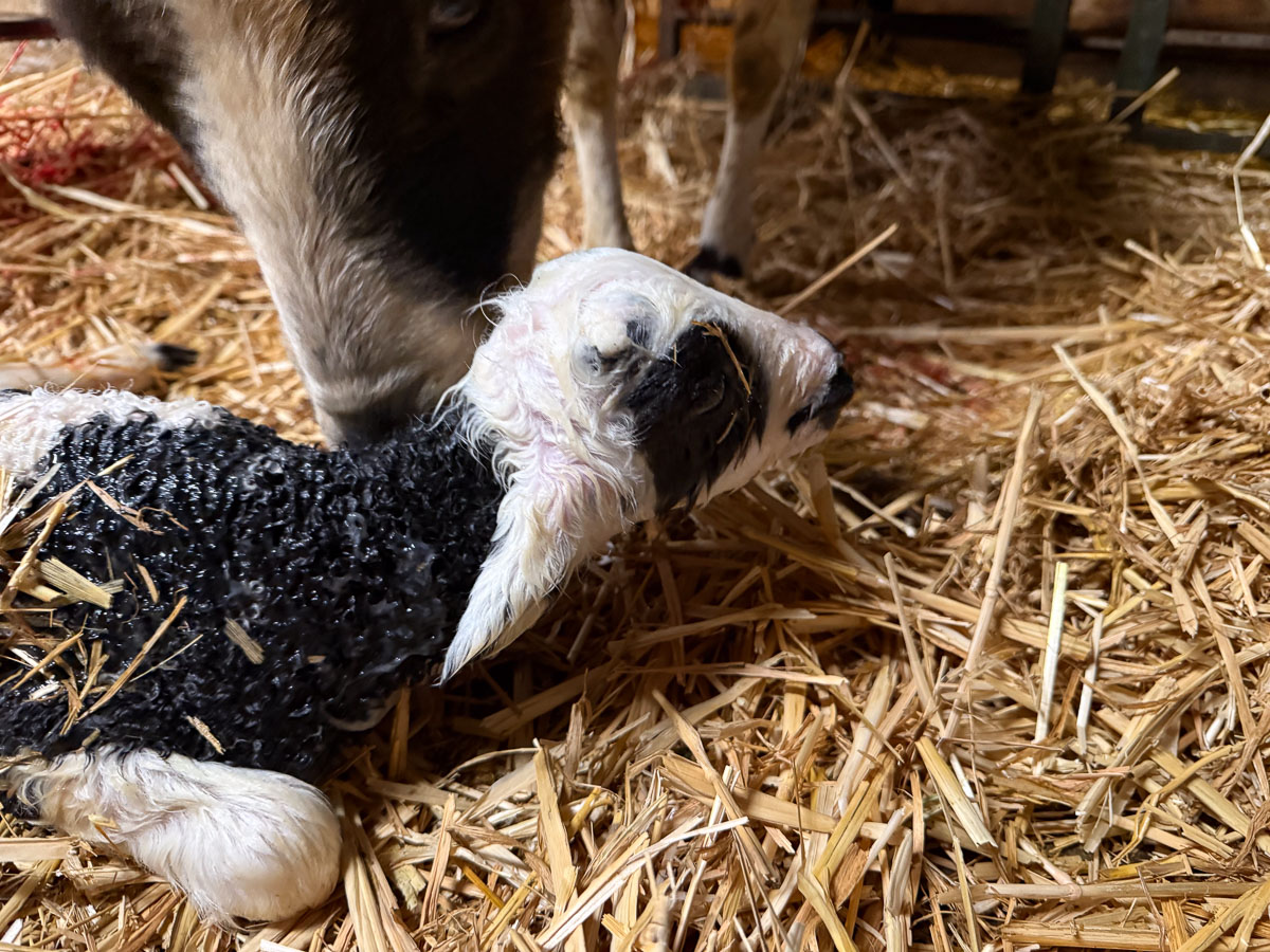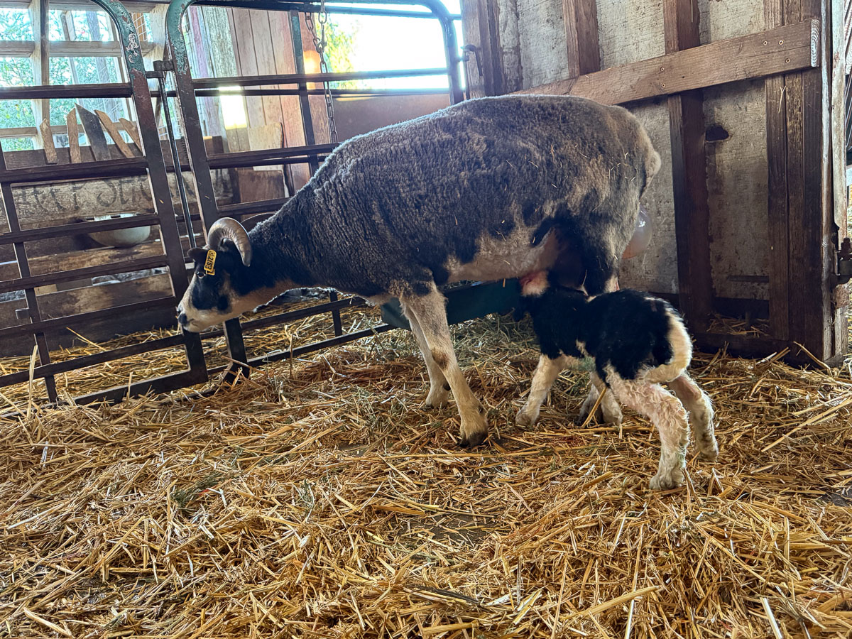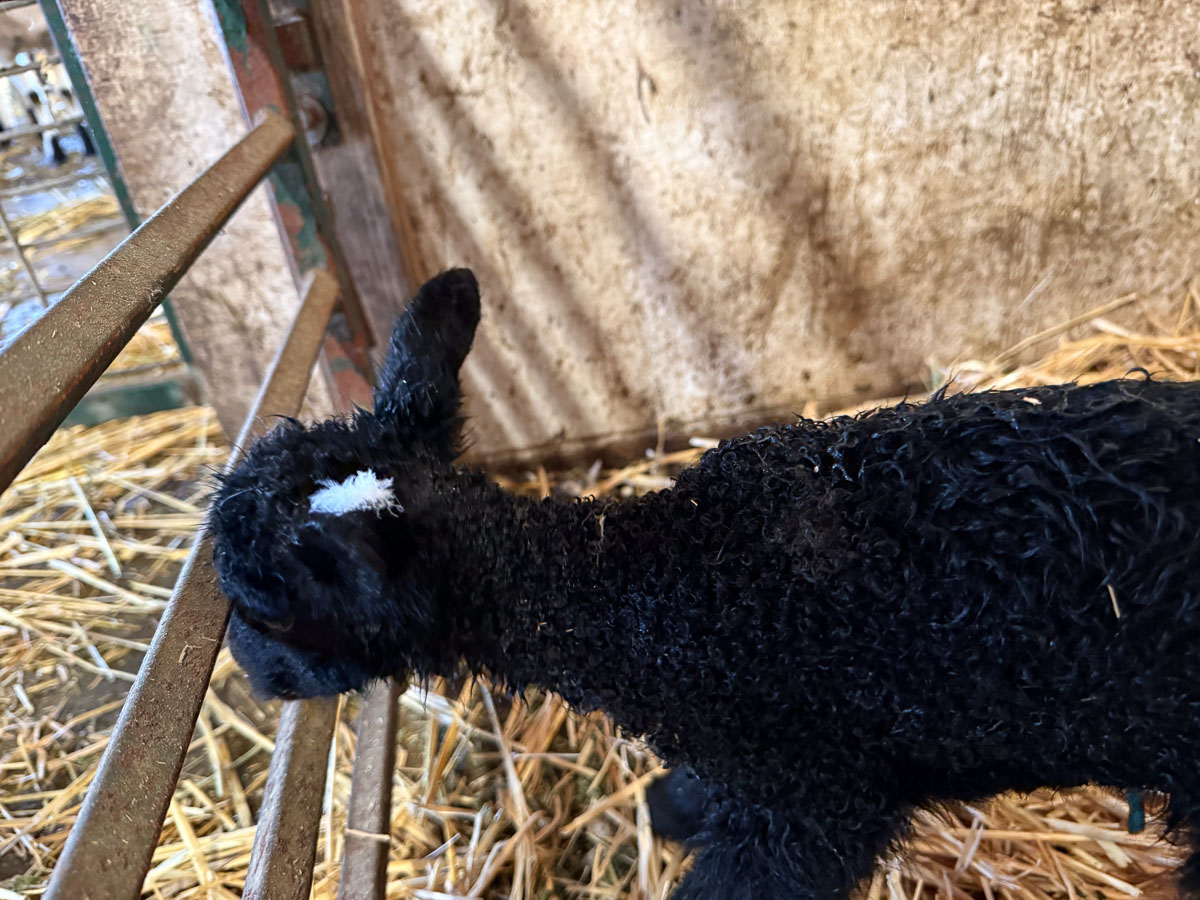 Here’s the first lamb adorned with a white feather that looks like a spot.