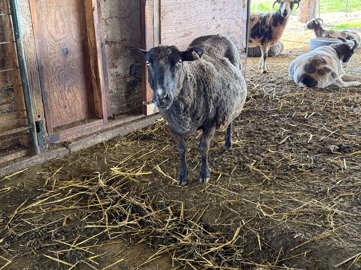 Addy is a Jacob-BFL (Bleufaced Leicester) cross. This photo was taken four days ago.