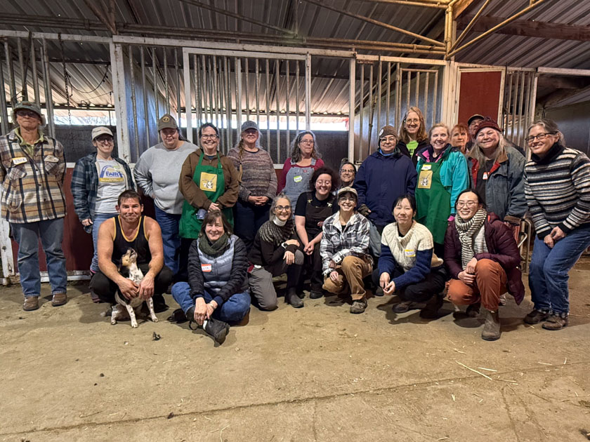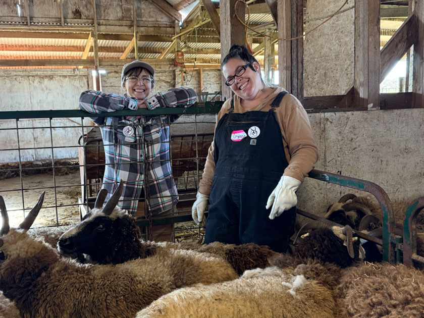About 10 days ago we harvested the last of the butcher lambs and, after taking a tanning class on Zoom (which I highly recommend), I decided that I would tackle one hide. It’s been salted since that day, but the weather has been so foggy or rainy that the hide never dried out. That’s OK because it was going to go right into the pickle bath. First I had to clean it up a bit, although our farm harvest guy does an excellent job. There wasn’t much to do. Before I had time to work on the hide, the vets came.