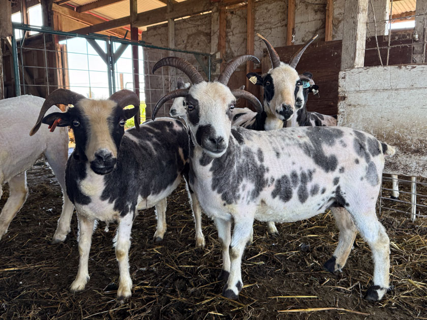 The evening before shearing Dan and I went to Trish’s farm, a few miles away, to pick up her 24 Jacob sheep. With sheep in full fleece it took two trailer loads. After shearing they all fit in the trailer with room to spare. These are Trish’s three rams.