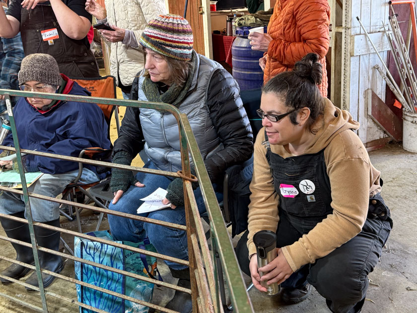 Another reason that it made sense for the vets to come is that there was a ewe lamb that the vets wanted to recheck after the ultrasound visit a couple of weeks ago. They had given her prostaglandin to clear up fluid in part of the uterus. It looks OK now.