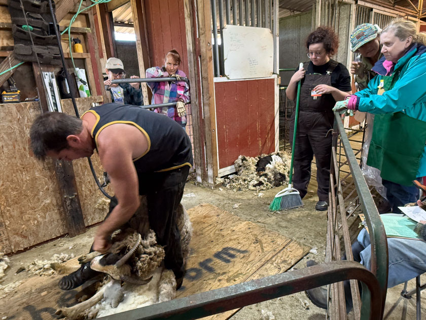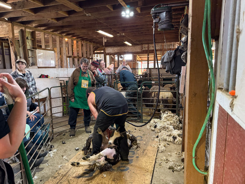 I woke up early on Shearing Day so I could finish the prep for the day. One of the jobs was to get all of our rams into the shearing area before people got here. While John was shearing Trish’s sheep I worked on the rams, vaccinated and trimming hooves on all. That way I didn’t have to think about catching them later to deal with that.