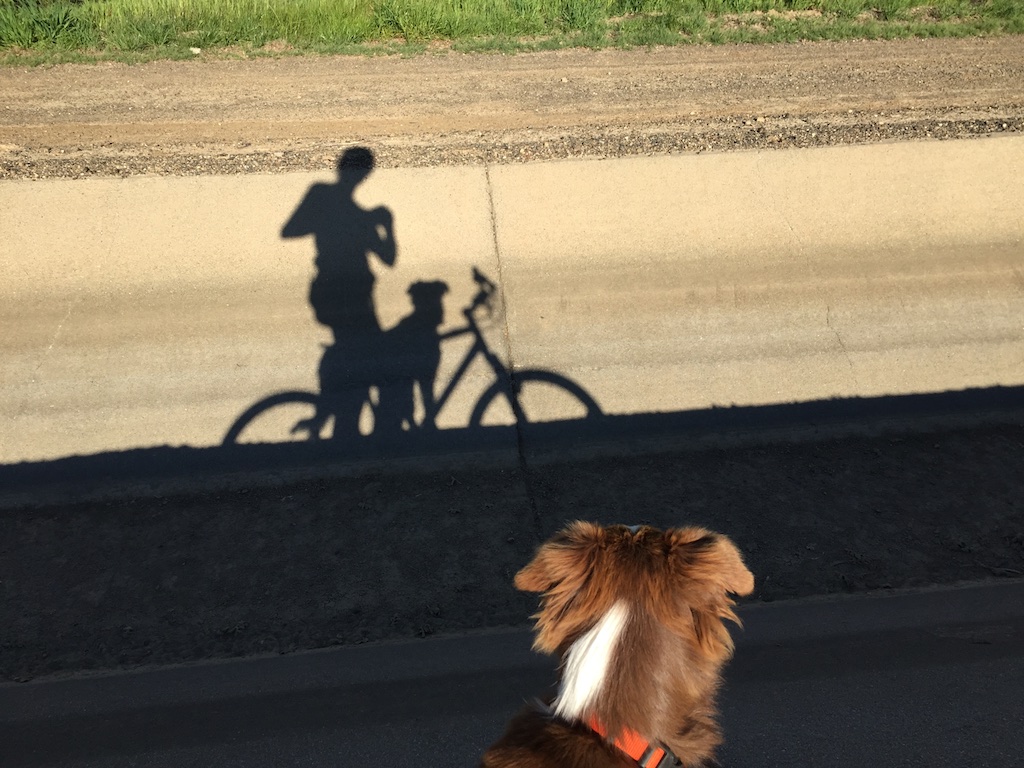 Ginny has always created her own entertainment by dropping the ball at the top of the ditch and letting it roll in. I tell her to “get it”, she retrieves the ball, and does it all over again farther up the road.