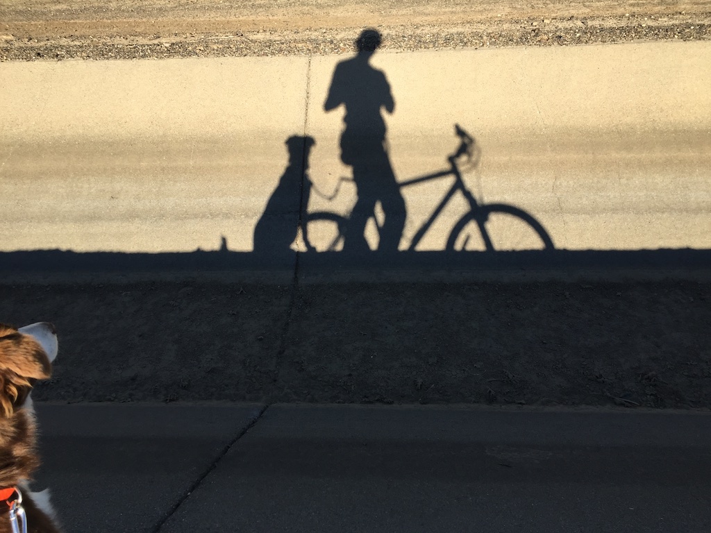 I try to pay attention when we get to the part of the canal that is cement. There are places where the water level drops a couple of feet and the water flows quickly, creating a whirlpool effect at that drop. Ginny can get in and out of the cement canal when the water is not so turbulent, but I don’t want her in this part. She seems to like the game of dropping the ball at those places and then expects me to get it out. The drop-off creates a turbulent whirlpool and the ball disappears and then resurfaces over and over, but doesn’t move downstream. I’m not getting in there and I’m not sending Ginny in. There have been several times when I was able to create a net with a forked stick and the leash, and eventually snag the ball by leaning over the wooden plank that is the walkway over the canal.