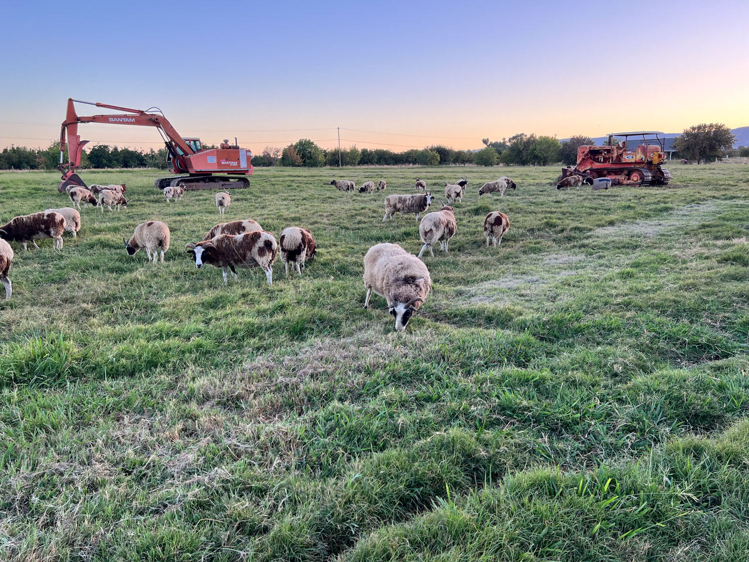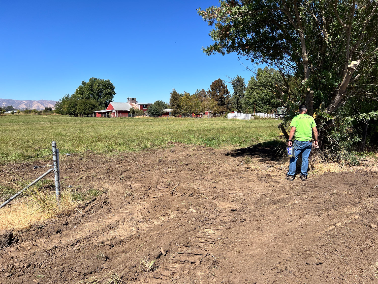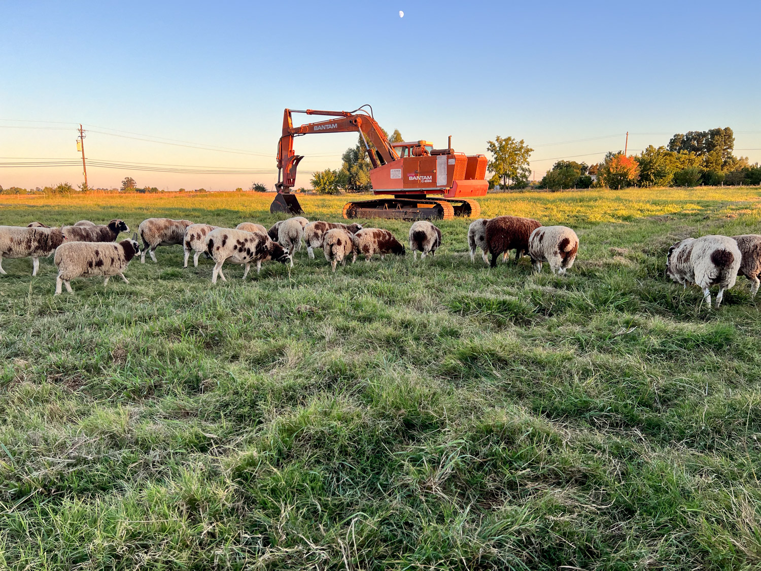 The equipment came in on a Friday and work would start Monday. We put panels where the fence was removed so we could let the sheep out for the weekend. Once work started the sheep would not have access to grazing for a very long time.