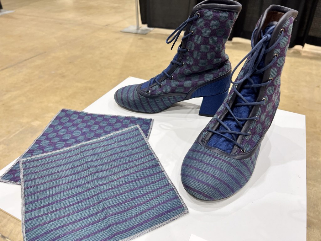 I got side-tracked here. The Tempestry project is focused on using fiber art to portray climate change by making “tempestries” to indicate high temperatures. This is partly how I got the idea of weaving my Year to Remember blankets. I found a book here that shows these pieces at National Parks all around the country, including one by my friend Lisa! So in the first two hours I had purchased items at four booths. Only about 250 booths to go!