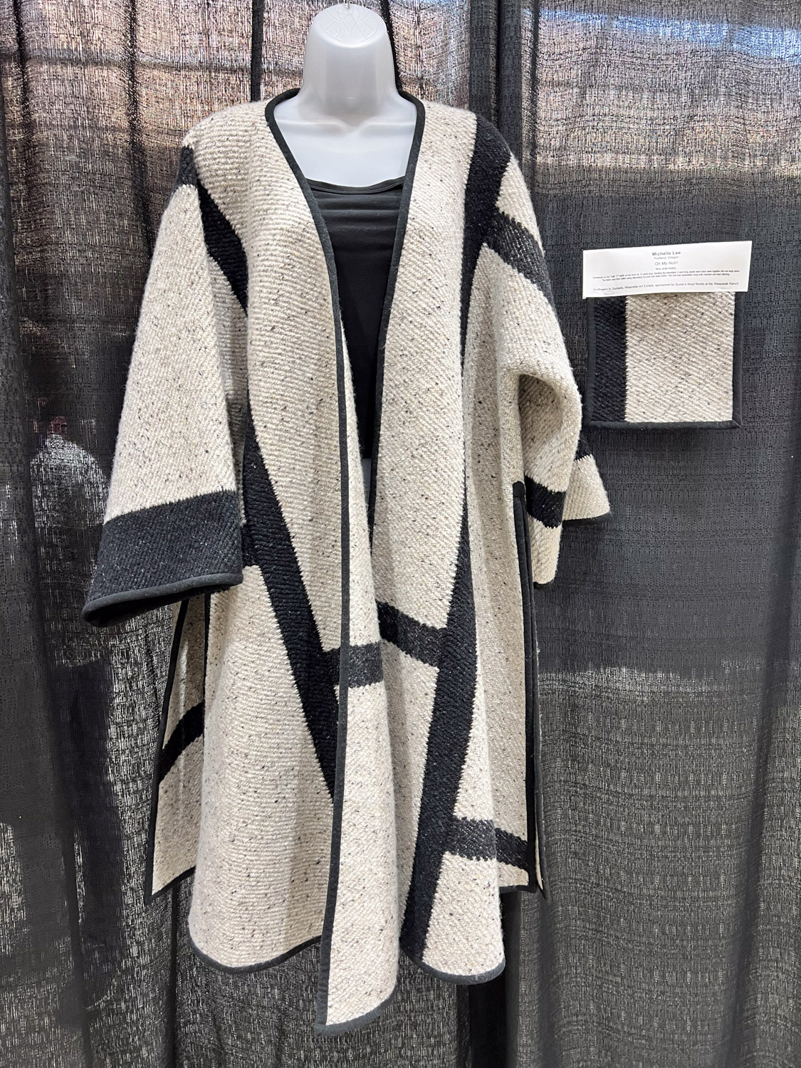 I spent time with one other vendor, business name of Shuttle Creek. Annie is a weaver and was working on a loom in her booth, She sells her mostly cotton garments at local shows I think. I just looked at the website and there are some gorgeous items there but blog and Facebook activity seem to stop in 2021 and I was thinking that she said she doesn’t do much online. Anyway, after talking to her a long time she pulled this piece off a hangar and put on me. I bought it and that’s what wore all day at the weaving event where I’m teaching (next post). I need a button that “no, I didn’t weave it”.