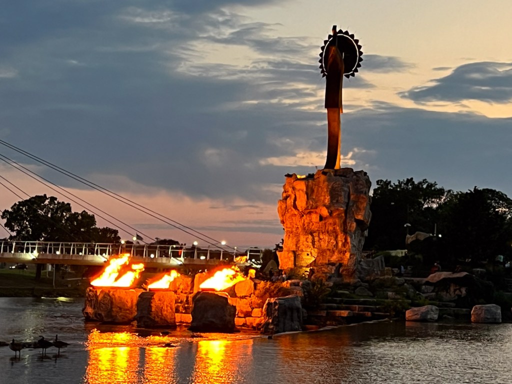 This is another view of the statue you see in the distance in the first photo. It is known as the “Keeper of the Plains” and was donated to Wichita in 1974 by the Kiowa-Comanche artist, Blackbear Bosin.