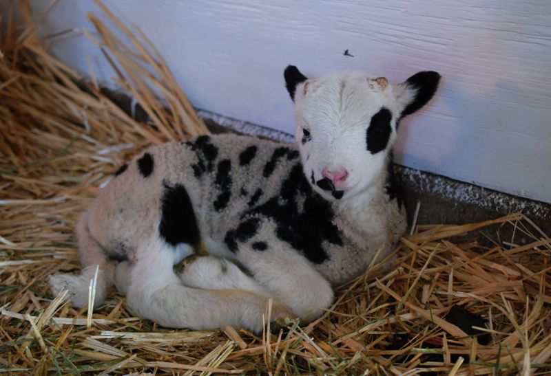 This is Miller. He started life out with nice looking horns, but after one broke it started to grow in the wrong direction. (Those photos will be another post.) This is looking down and you can see the horn going into the top of his skull behind his ear.
