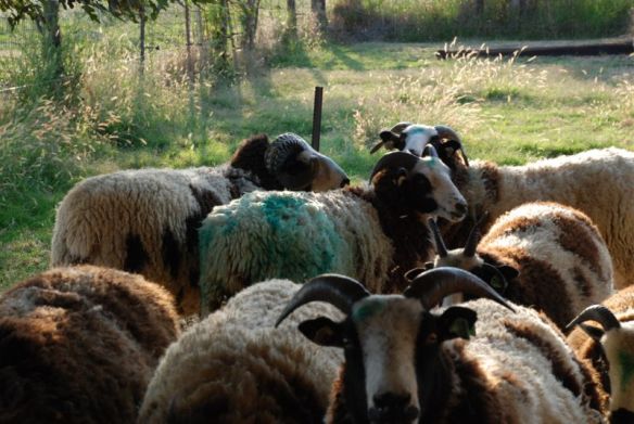 Four Farm Club members came today to help me sort out breeding groups. I told myself that using four rams was plenty but in the end I put ewes with six rams. I don’t have a very big place and by the time I save spaces for non-breeding rams (a few ram lambs left), non-breeding ewes (my State Fair ewes and lambs and a few ewe lambs that I don’t want to breed yet) and try to leave buffer spaces between breeding groups it gets tricky to find space for everyone.
