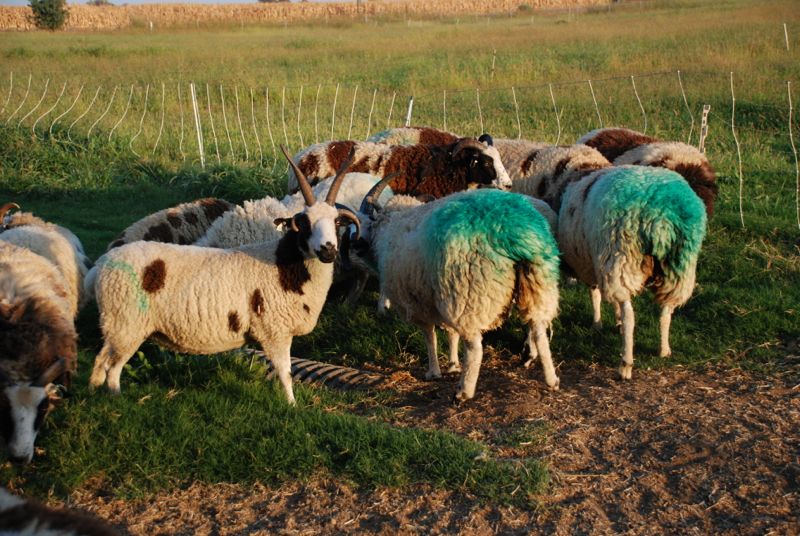 When you first put the rams with the ewes they get a little carried away trying to find a ewe in heat and you may see random marks on some of the ewes. One of the Farm Club members asked how you can tell if the marks from the ram harnesses are the “real thing”. I told her that you can tell.