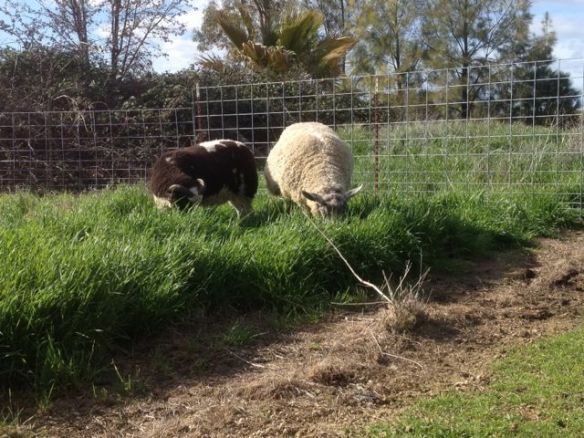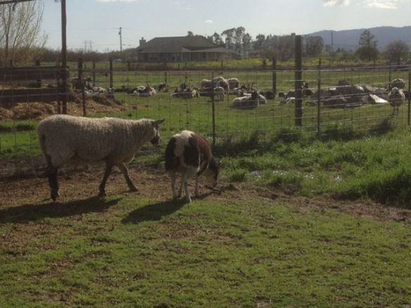 SUCCESS: When I found Helen’s dead lamb I thought about trying to graft this house-lamb onto Helen. Helen wasn’t particularly interested, but at least she didn’t try to kill the lamb or get away from it. I skinned the dead lamb and used that skin as a coat on the new lamb.