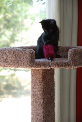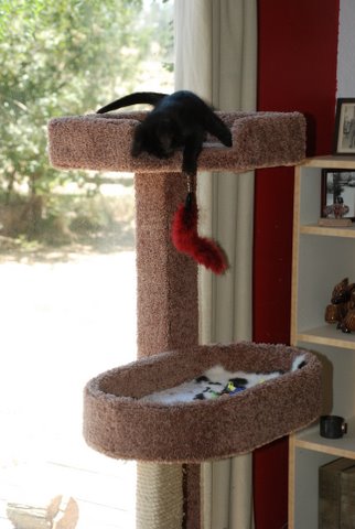 The main issue is dealing with the dogs. Rusty hasn’t shown any aggression. In fact he wants to play. But he’s awfully big compared to this little kitten and I feel like I have to watch constantly. At night I put the kitty in a crate so that I know that everyone is safe.
