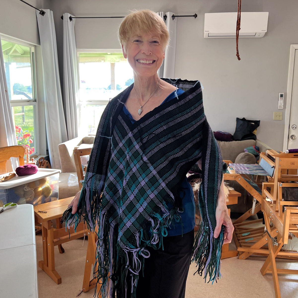 Taking a break from describing the new pasture to share weaving classes the last two weekends. Last Saturday and Sunday I held the Weave a V-Shawl class.