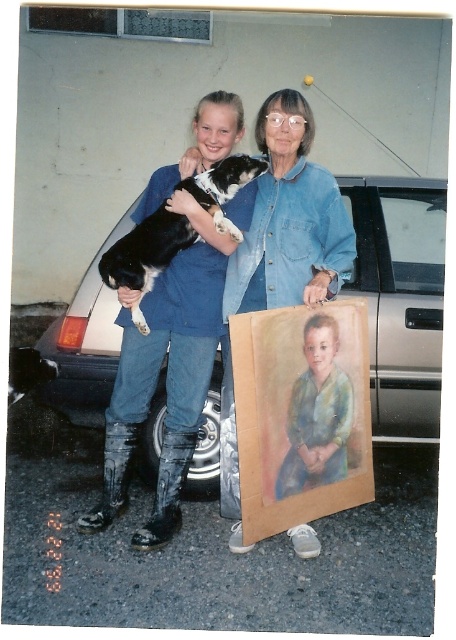 Mom with Katie and a drawing of my brother that my aunt did.