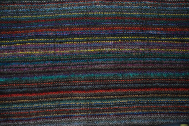 The more recent “Mom’s yarn blankets” on the loom showing the yarn variety.