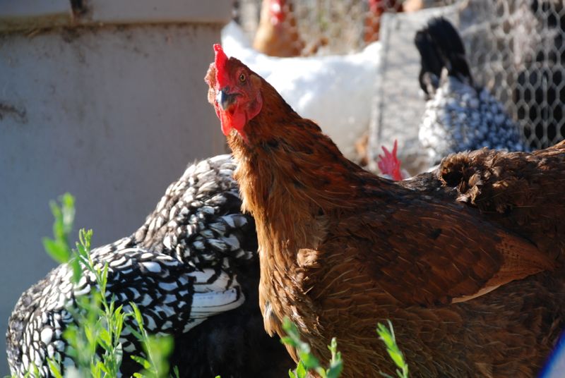 The other day when I was feeding the chickens one of them walked out the door of the chicken house. I decided to leave the door open and let them all out. My chickens have lived in a chicken house for years because a neighbor complained about them tearing up her garden. Now I realize that this was many years ago which meant it was a completely different batch of chickens. (And that batch of chickens gave new meaning to the term free range–they had a lot of traveling to do to get to that neighbor’s place when I have a perfectly good barnyard full of bugs here.) Those chickens also used to roost on my feeders, making a big mess that I was not sorry to get rid of. So that batch of chickens set the chicken-housing standard here….with one exception that I’ll get to later.