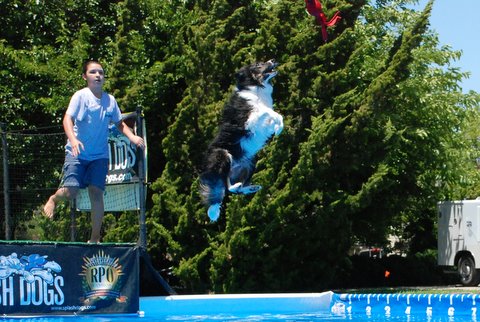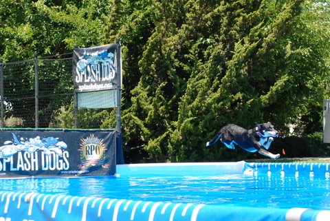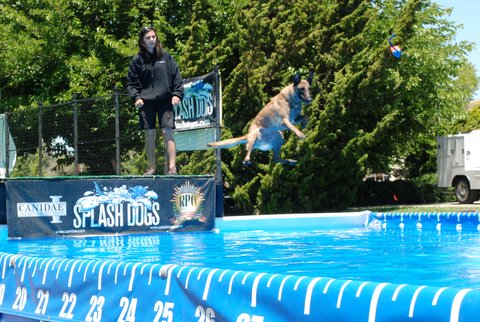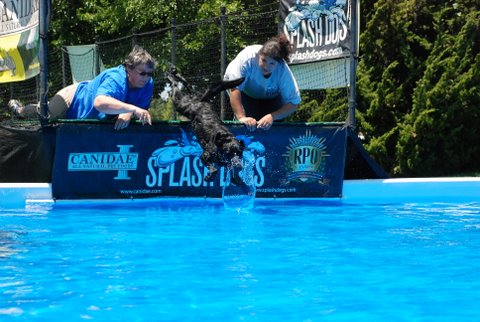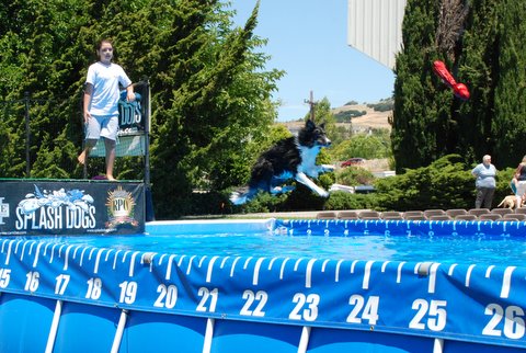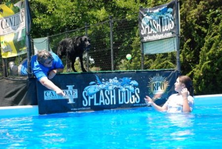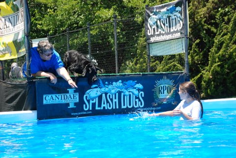 Jackie came back to the fair today to help out with the SplashDog performance and give her dog, Ringo a lesson. These are photos of Ringo learning the game.