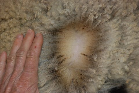 Here is Kenleigh’s Savor’s wool. Tioga’s wool is crimpy and soft. Savor’s wool is lofty without visible crimp. Both are good fleeces for spinning, but have different character.