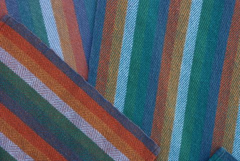 These are three more blankets on that same warp. In this case, they represent 2023 in Vacaville and show how the stripe pattern will be the same for a given year and location, but the colors can be completely different. These will be listed on the website when I have time.