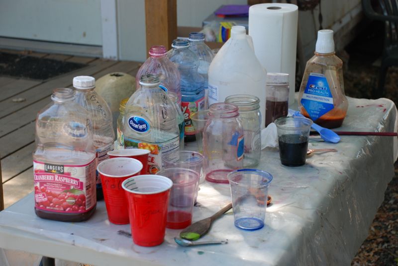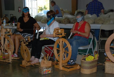 I think seven people came for Dye Day. I don’t do this for this group as an official class. They have all become friends and I can provide the space and materials to have a fun day. Fortunately we avoided rain today and even had a bit of sun at times. Usually we choose to do either protein fibers or cellulose because they use two different dyes and procedures. This time I got it all out.