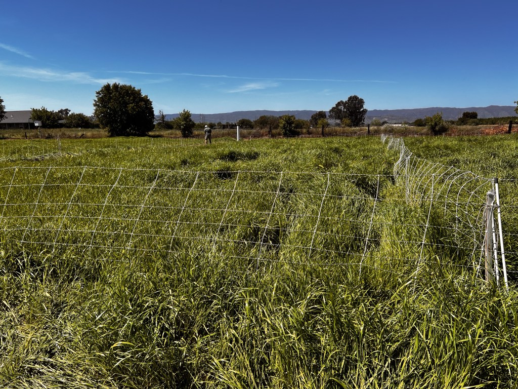 This photo is after grazing Paddock 1N for three days. A lot is trampled, but they were still eating out here this morning.