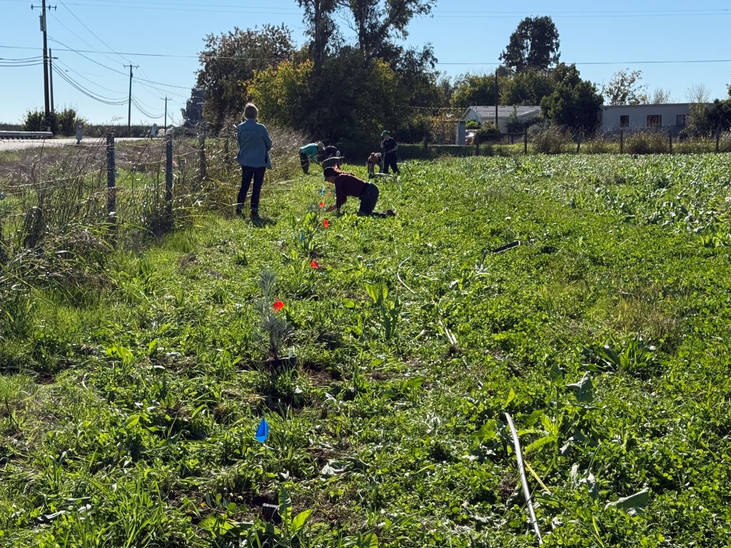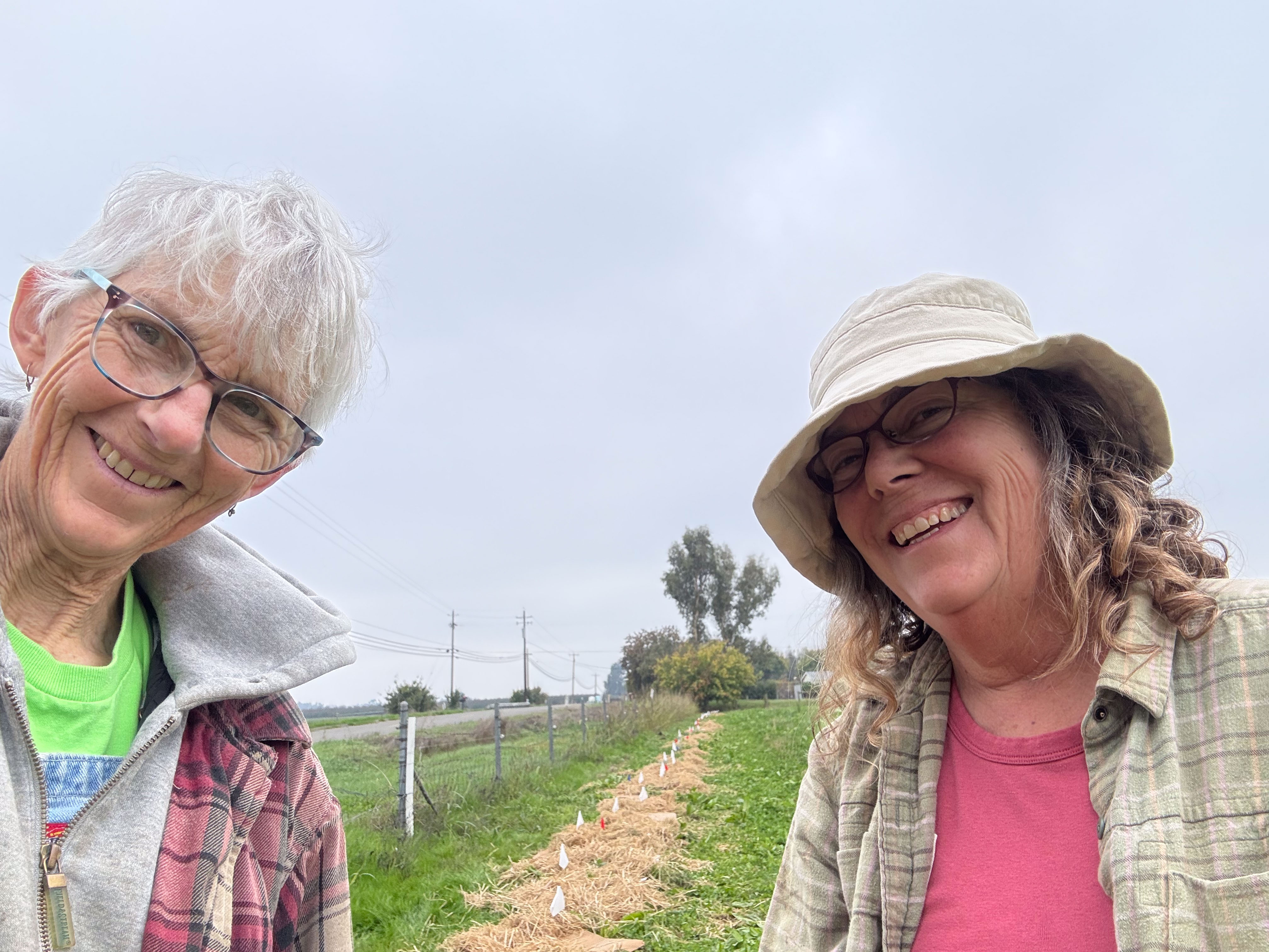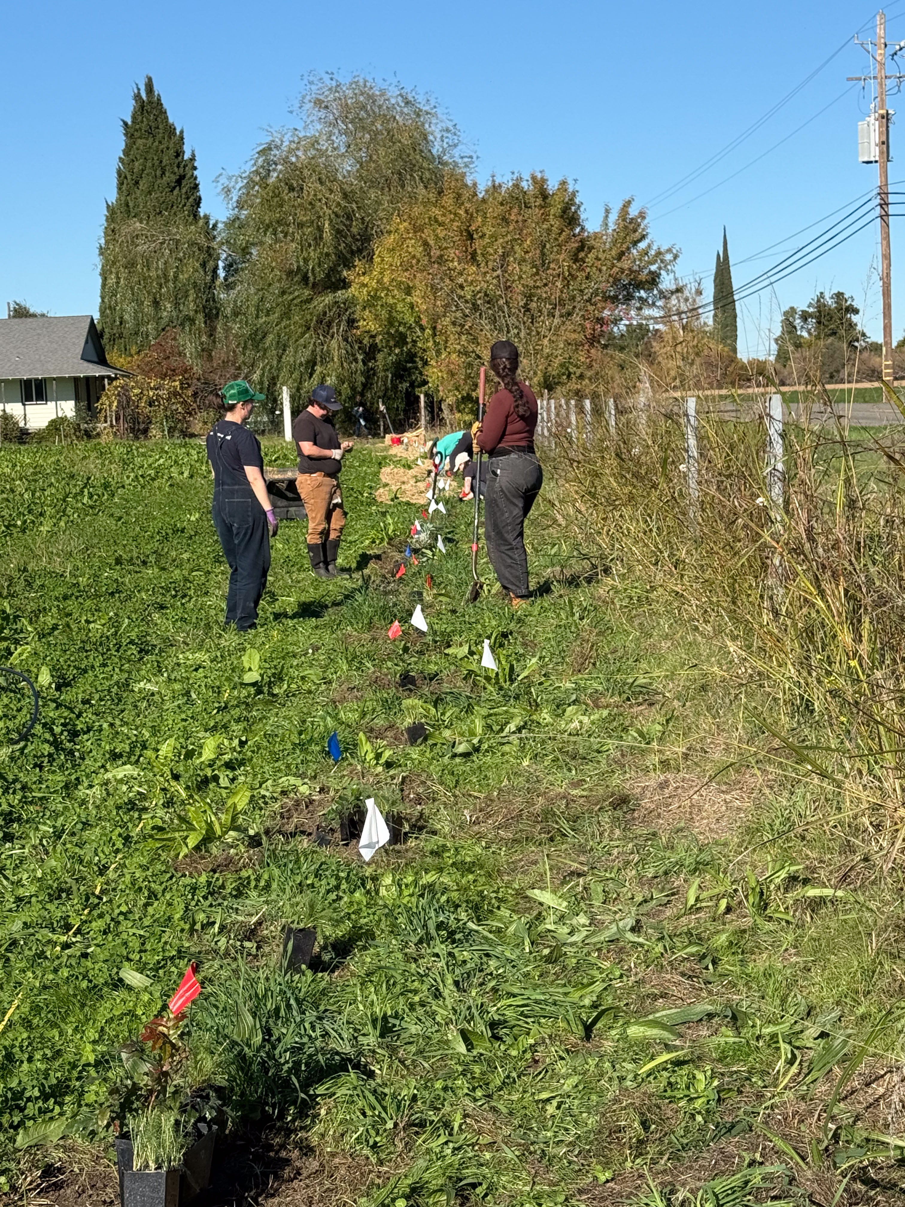 Raquel is a Farm Club member who went out of her way to help figure out how to order what was needed to install a drip system to irrigate our newly planted hedgerow. I had also picked up more cardboard from a friend so we could continue the mulching that we started. We rolled out 250′ of 3/4″ tubing and secured it with u-shaped wires.