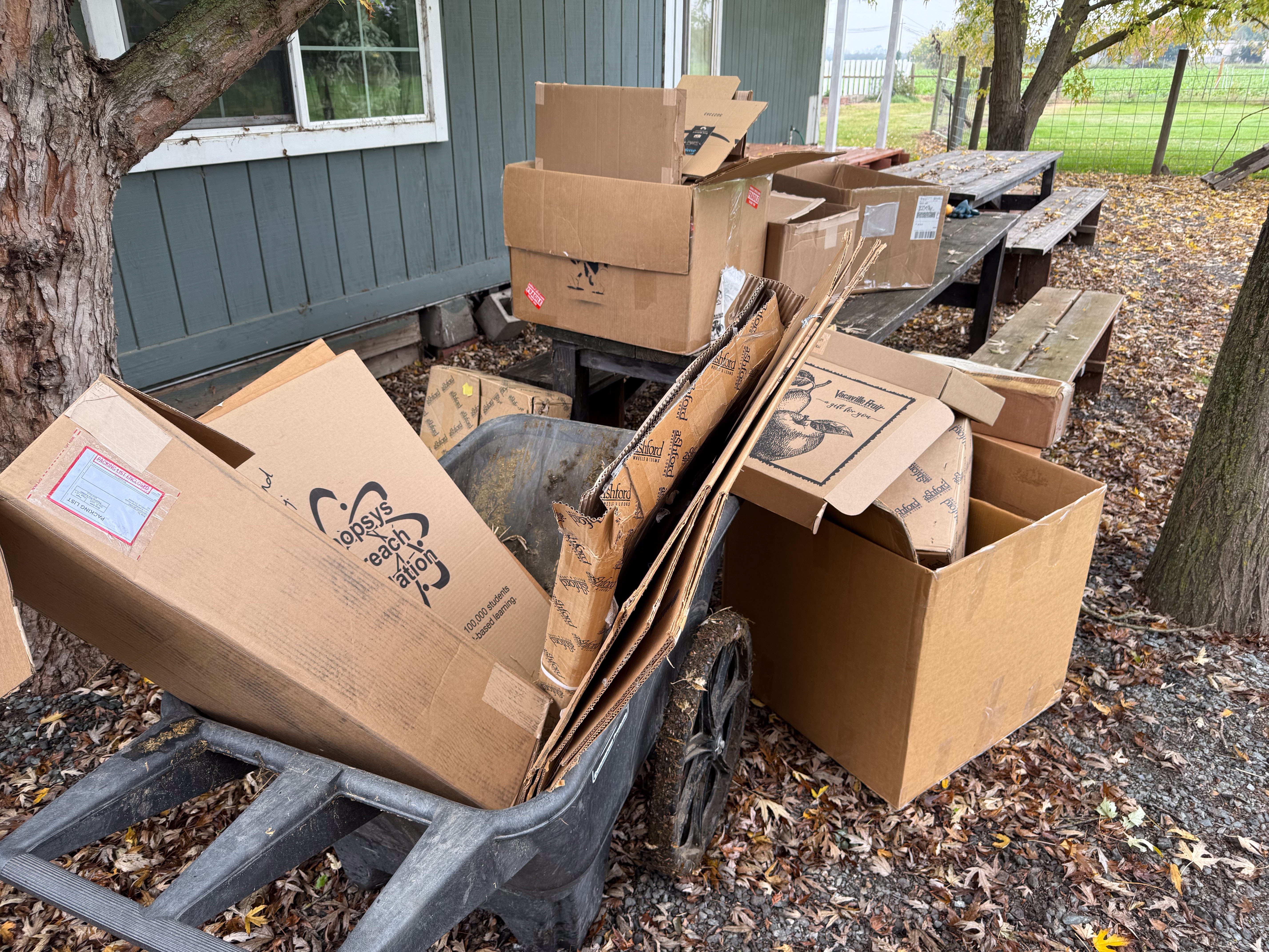 We’re still in the gray gloom of drizzly fog, but we accomplished some outdoor tasks that make me feel as through I accomplished something.