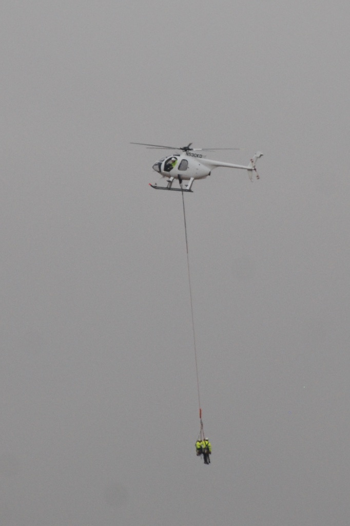 This Chinook helicopter is huge. I can’t remember the details now. I think it can carry 2000 gallons of water. (I may have pulled that number out of the air and I can’t ask Matt right now. I just asked Mr. Google and see that Chinooks of various configurations may carry 2500 to 3000 gallons and fill at a rate of 4000 gallons/minute.)