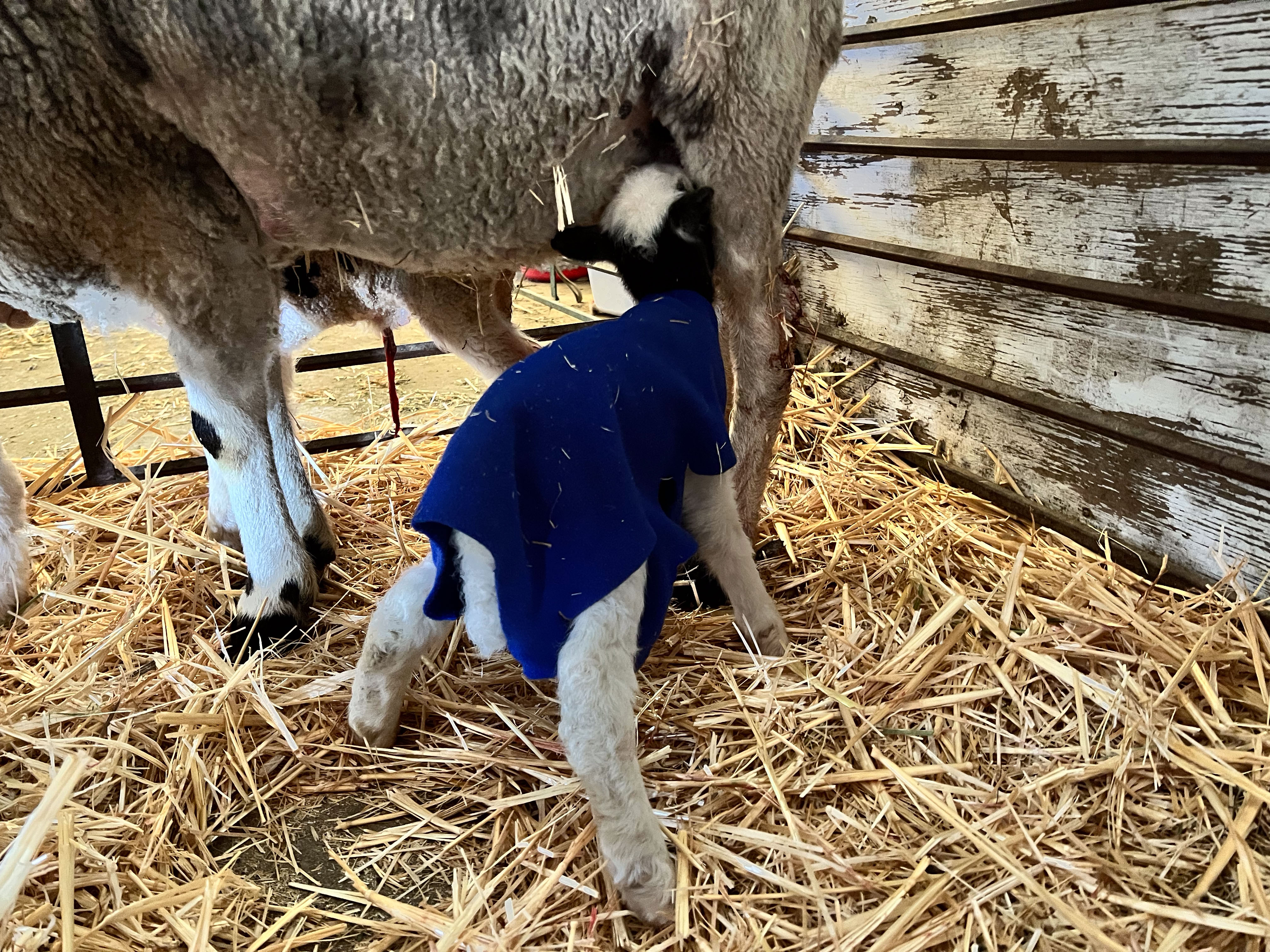 I milked colostrum from Amara and tube fed the lamb.