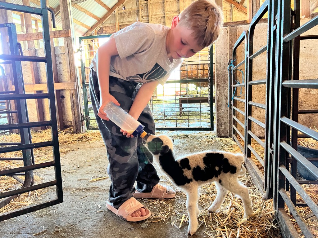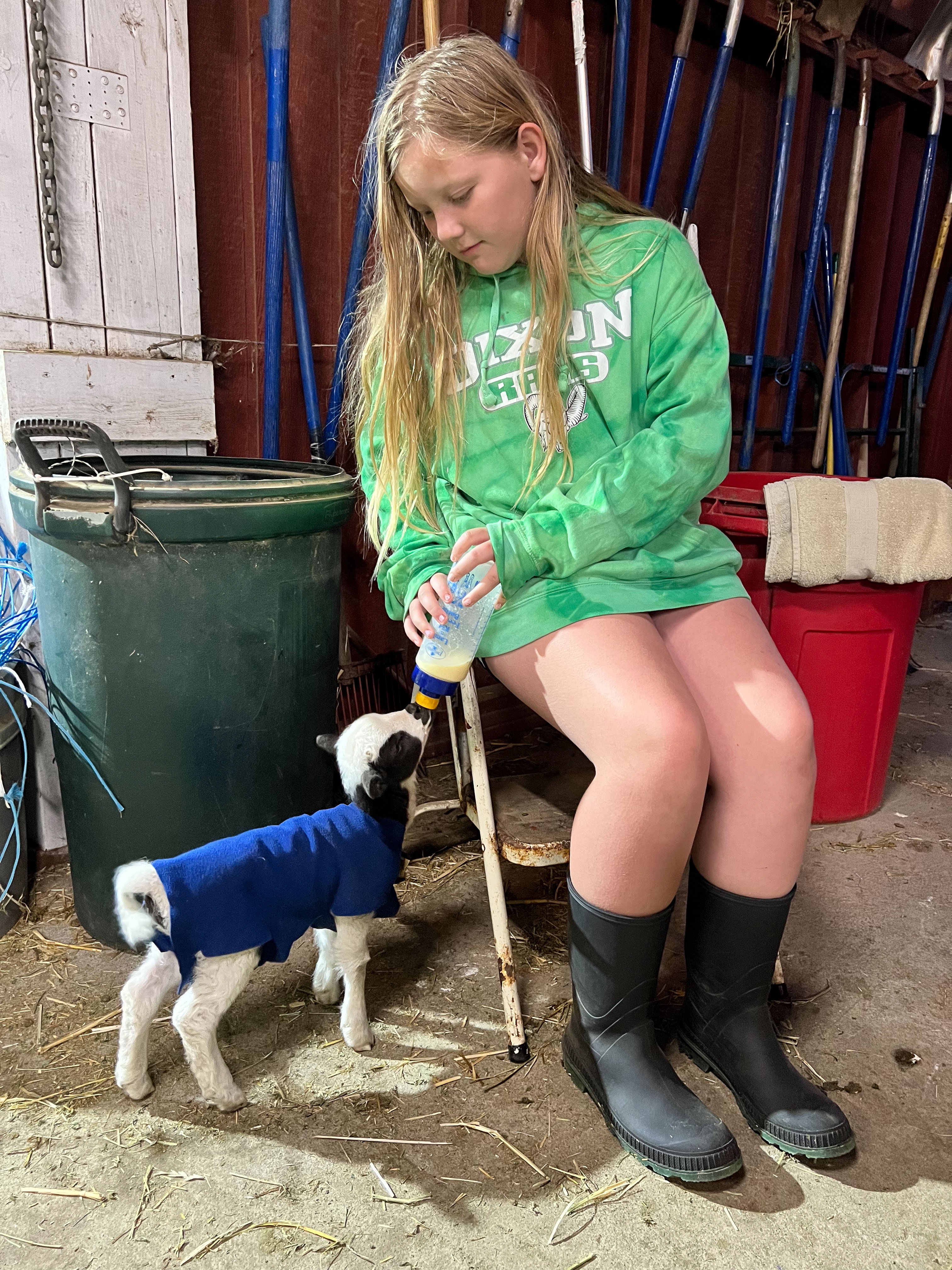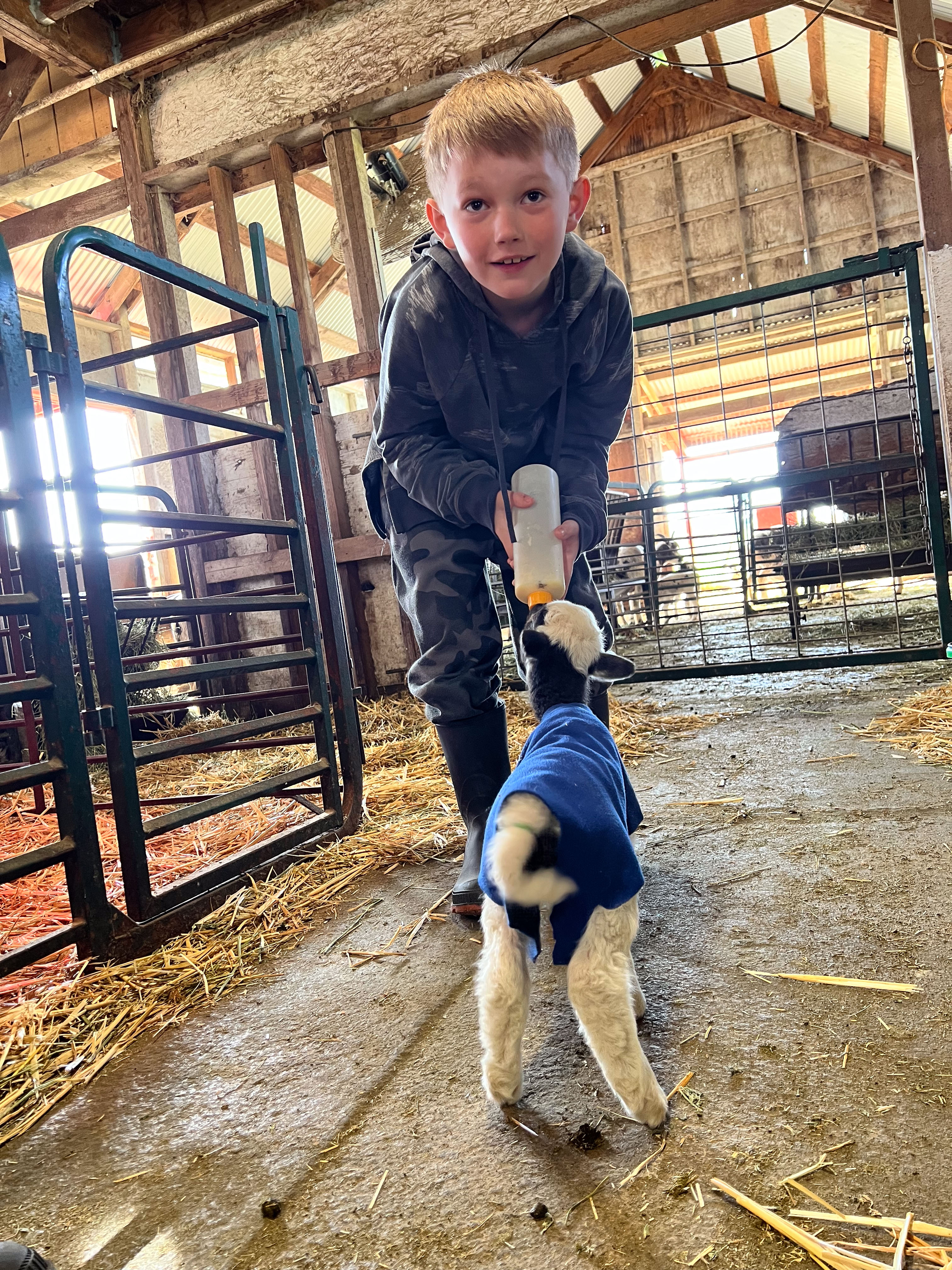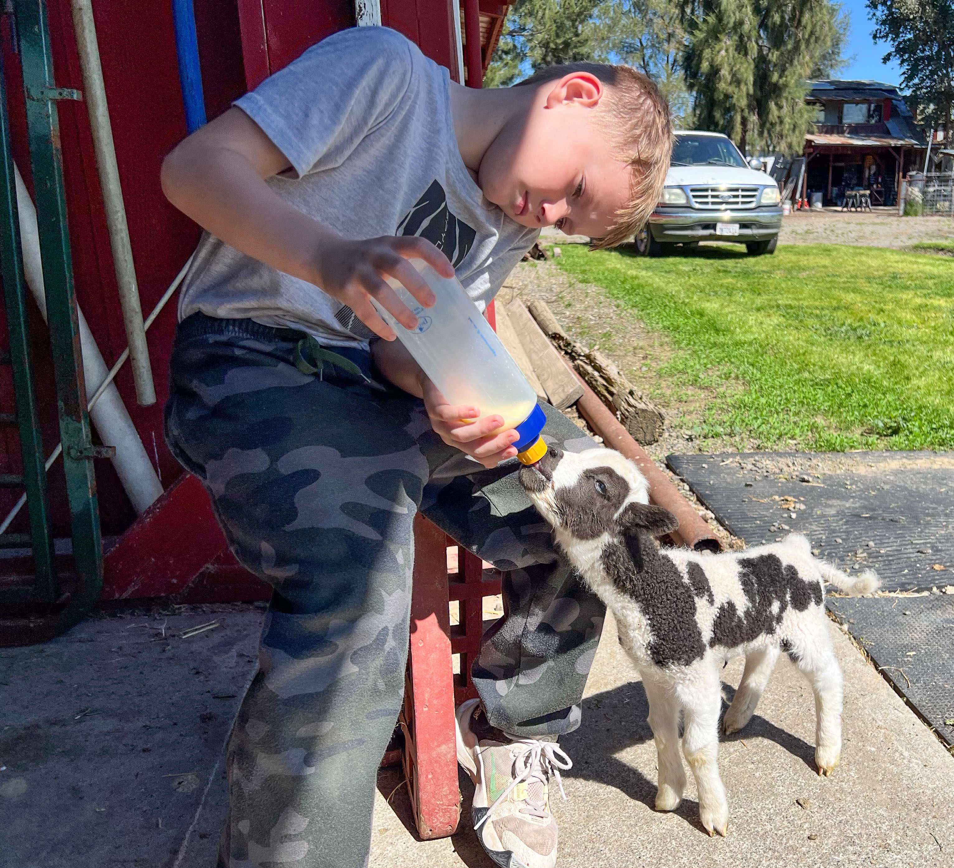 My grandkids were here for a week and shared bottle feeding Sparky. This is 8-year-old Kasen.